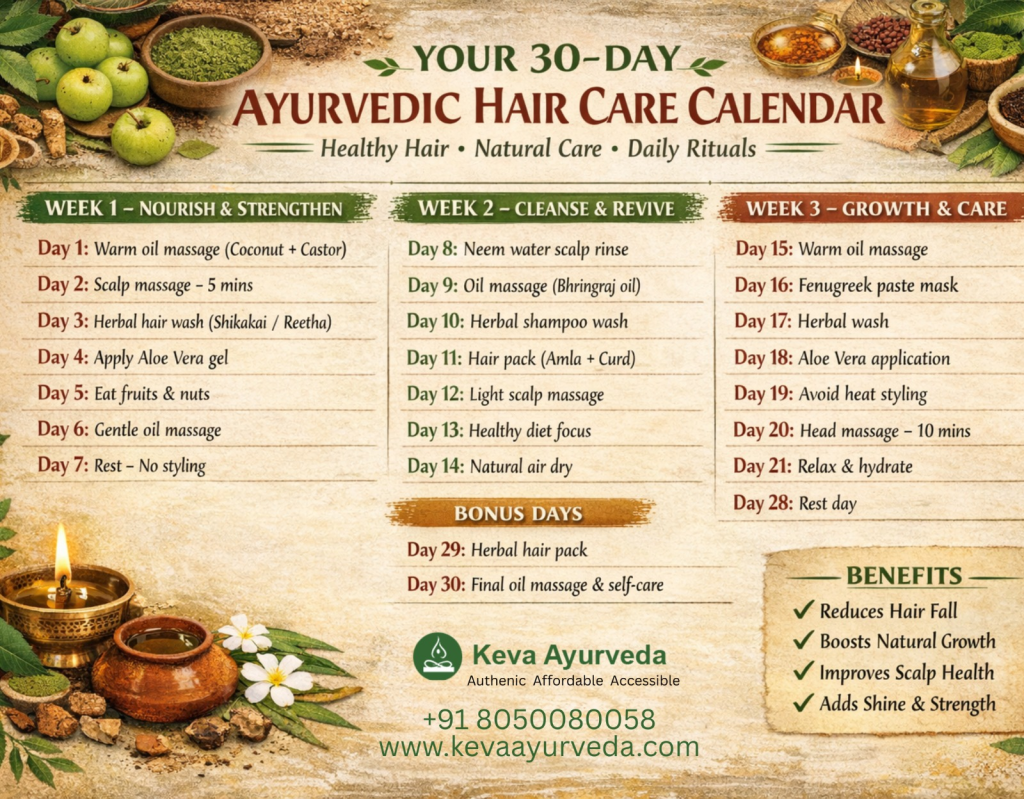 Absolutely. What you eat shows up in your hair. Ayurveda links hair loss with poor digestion and high stress. Adding ghee, nuts, green vegetables, and digestive herbs like triphala can improve results. Detox routines like mild fasting or herbal cleansing may also be suggested.